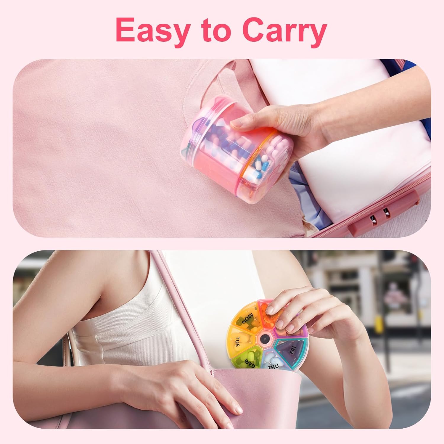 Fullicon Detachable Large Pill Organizer, Moisture Proof Travel Pill Box, 7 Day Pill Bottle, Secure Pill Case, Weekly Daily Pill Container Holder Dispenser with Customizable Stickers (Pink)