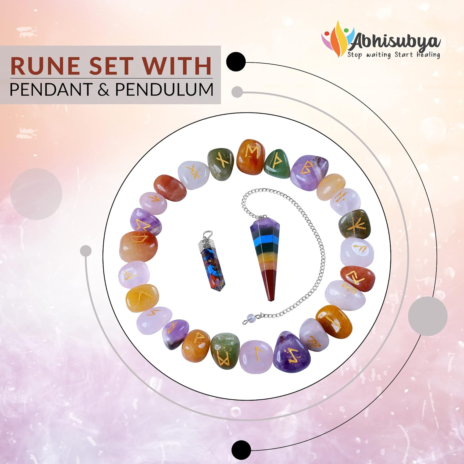 Rune Stones available through Natures Energies All rune symbols have been hand engraved onto each of the crystals as shown.Rune stones have been used for centuries as a tool for divination. They fall into the same category as the tarot, Each rune stone is inscribed with a symbol and each symbol holds a special meaning. These Beautiful Rune sets of All Natural Reiki Stones are fully engraved and hand painted in gold leaf. Having your items carved, sets symbols deep inside the crystals, embedding the symbol for eternity. It improves intellect, power, creativity and self-respect. It brings good luck to your life. Enhance the emotional balance.